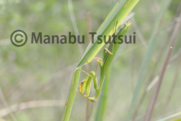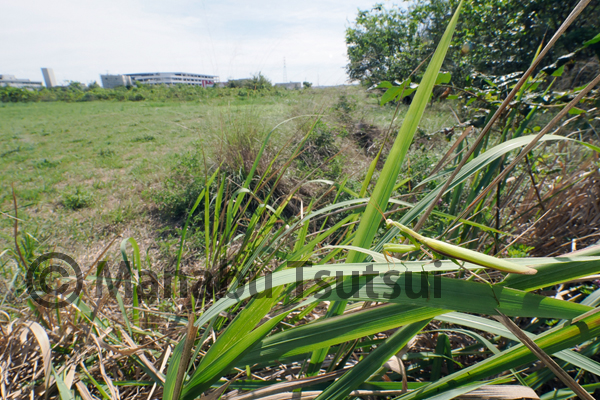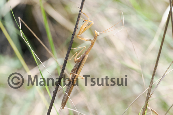 カマキリ類の生態写真としてストックが薄いのがウスバカマキリで、今年の秋の課題と考えていました。22-3年前、群馬県内では藤岡市で多産する場所がありましたが、2013年に訪れた時はオス1のみしか確認できず、現在の状況はよくわかりません。都内の多摩川でも局所的に生息している情報があり、蛾の師匠の横田さんに相談したところ、よくいる場所があるとのことでご案内していただきました。