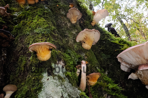 ほとんどの樹の幹も、林床も苔むした湿潤な森林です。私はキノコで見つけたハネカクシにはまりました。