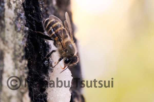 ニホンミツバチが樹液に来るのは意外に珍しいかもしれません。
