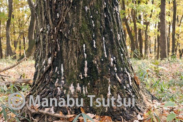 落葉の季節となり、そろそろオオムラサキの幼虫も根元に下りたころと思い、エノキの根元を探してみました。