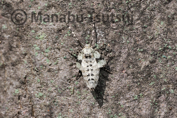 歩き始めてすぐに、エゴノキの幹でイチモジフユナミシャクのメスが見つかります。