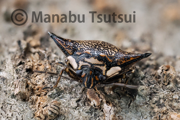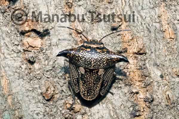雑木林を歩き始めて、すぐに目に留まったのが、幹に張り付くウシカメムシでした。