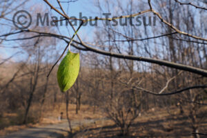枝先にしがみついて越冬する姿を見たことがありますが、陽気に誘われて、林床から這い上ってきた感じです。