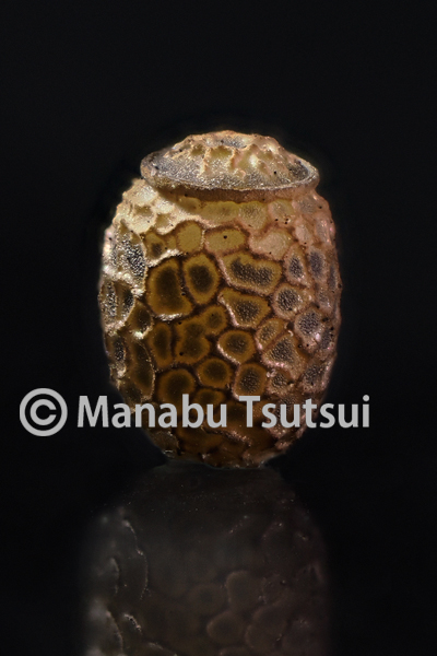 シラキトビナナフシの卵は、日本産トビナナフシ(Micadina属)3種の中で、もっとも凝った彫刻的模様です。