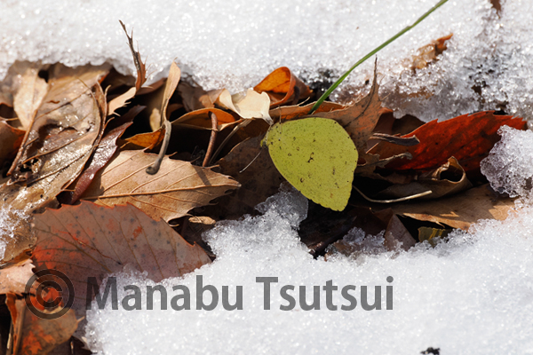 背景が北斜面で雪が残ります。
