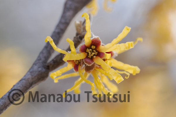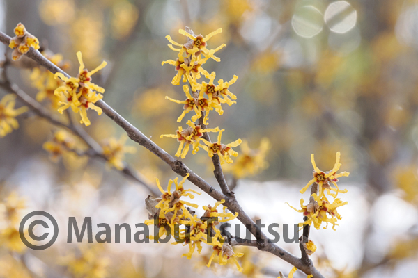 マンサクの花が見ごろでカメラを向けます。