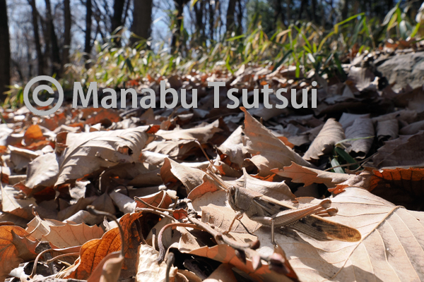 南面の細園路を歩く過程で、足元でピョンとツチイナゴが飛び出しました。