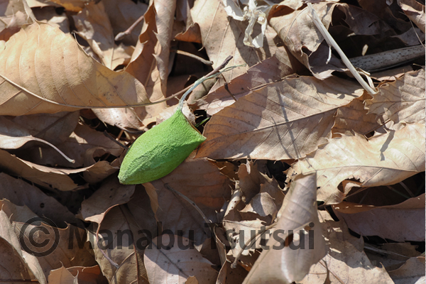 林床に鮮やかなウスタビガの繭が落ちていました。