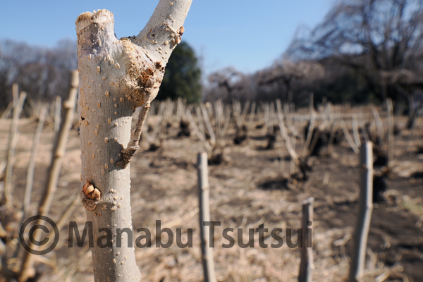 クヌギ、コナラの幹で冬尺蛾のメスを探しますが、まったく見つかりません。