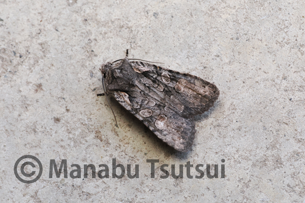 園内で見られるキリガ類では少ないほうで、渋い色合いも併せて出会えるとうれしい蛾です。