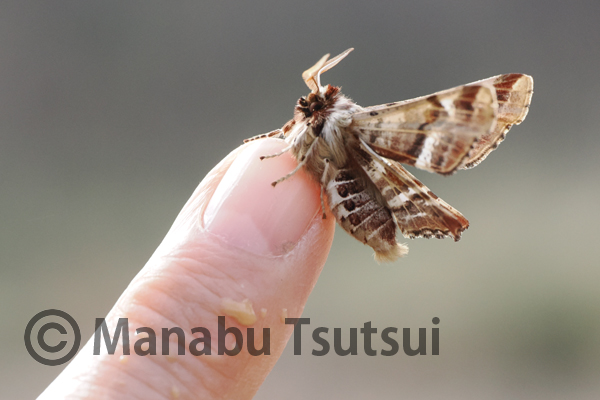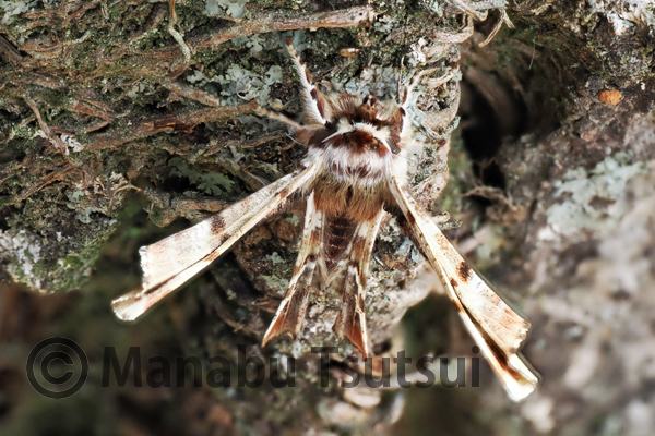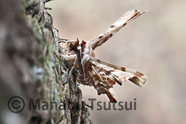 立体的な静止ポーズと、翅の折り畳み構造といい、なかなか魅力的な蛾です。