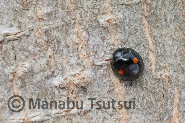 オニグルミの幹では、ヒメアカホシテントウが徘徊していました。