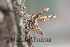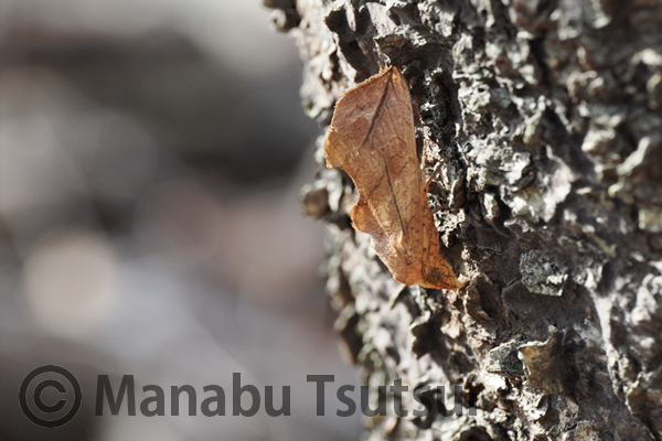 踏み込んだ林床の枯葉から蛾が飛び出します。