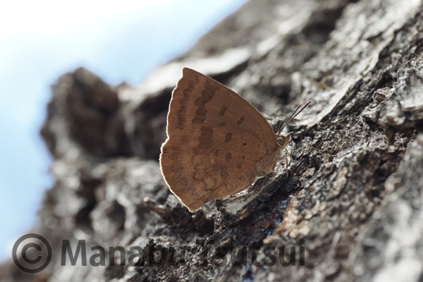 樹液を出しているコナラの幹にムラサキシジミが止まっていました。