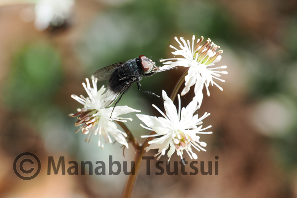 セリバオウレン 両性花とクロバエ科一種 OLIMPUS OM-1mkⅡ 90mmMACRO ISO1000 SS1/800 F6.3