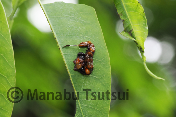 食跡の残された、ウルシ科特有の黒いシミの付き方が気になります。