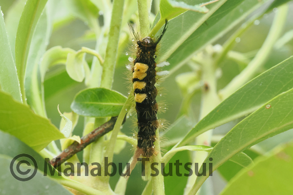 老熟したヤクシマドクガが見つかり撮影しつつ、小雨がぱらつきはじめ午前の部を終了しました。