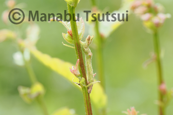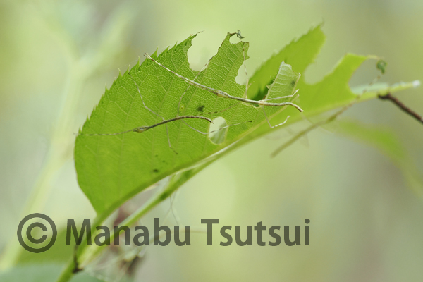ひこばえは虫食い跡だらけで、ナナフシのほかにイモムシ、ケムシもたくさん見られます。