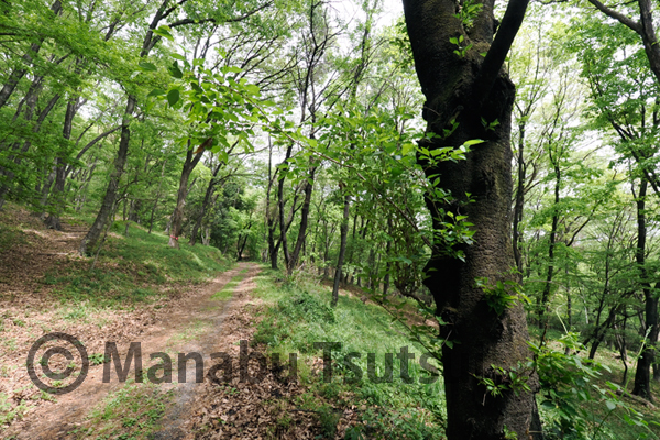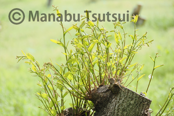 畑にある、低く仕立てたクヌギからは、みずみずしいひこばえが芽吹いています。