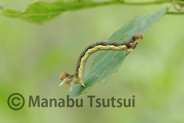 成長にばらつきはあるものの、チャバネフユエダシャクの幼虫は、すでに終齢に達したものも多く見られました。