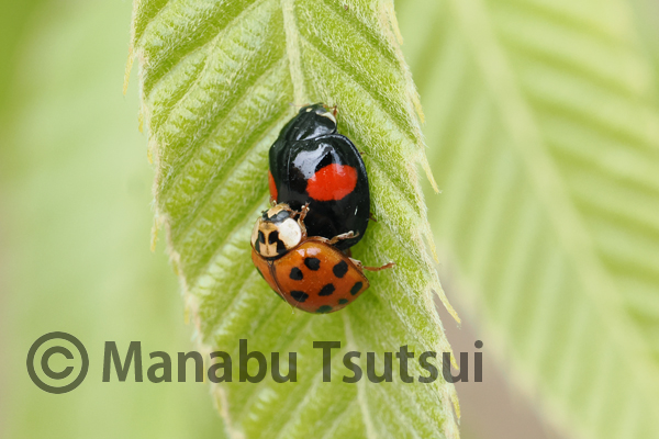 入園ゲート手前で、交尾中のナミテントウが目に入ります。