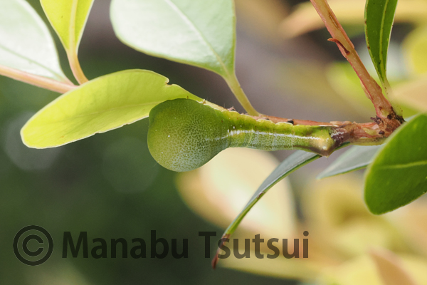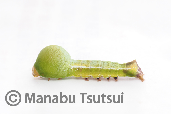 念願の緑色型のカバシタリンガ幼虫と、あっさり対面することになりました。
