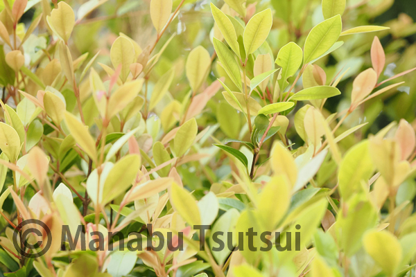 赤みがかった若葉に体色が同調しています。